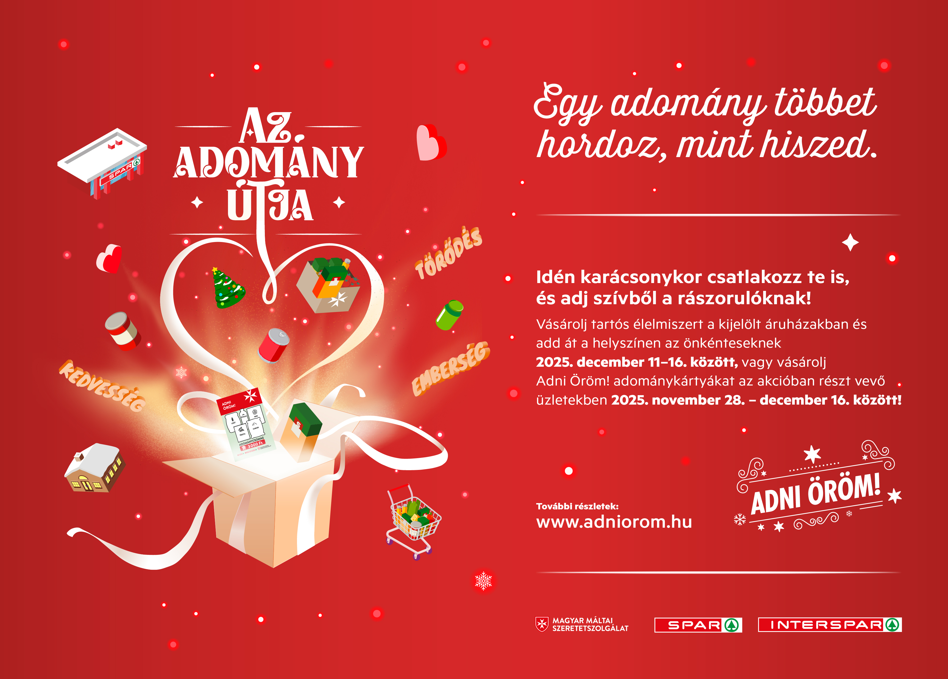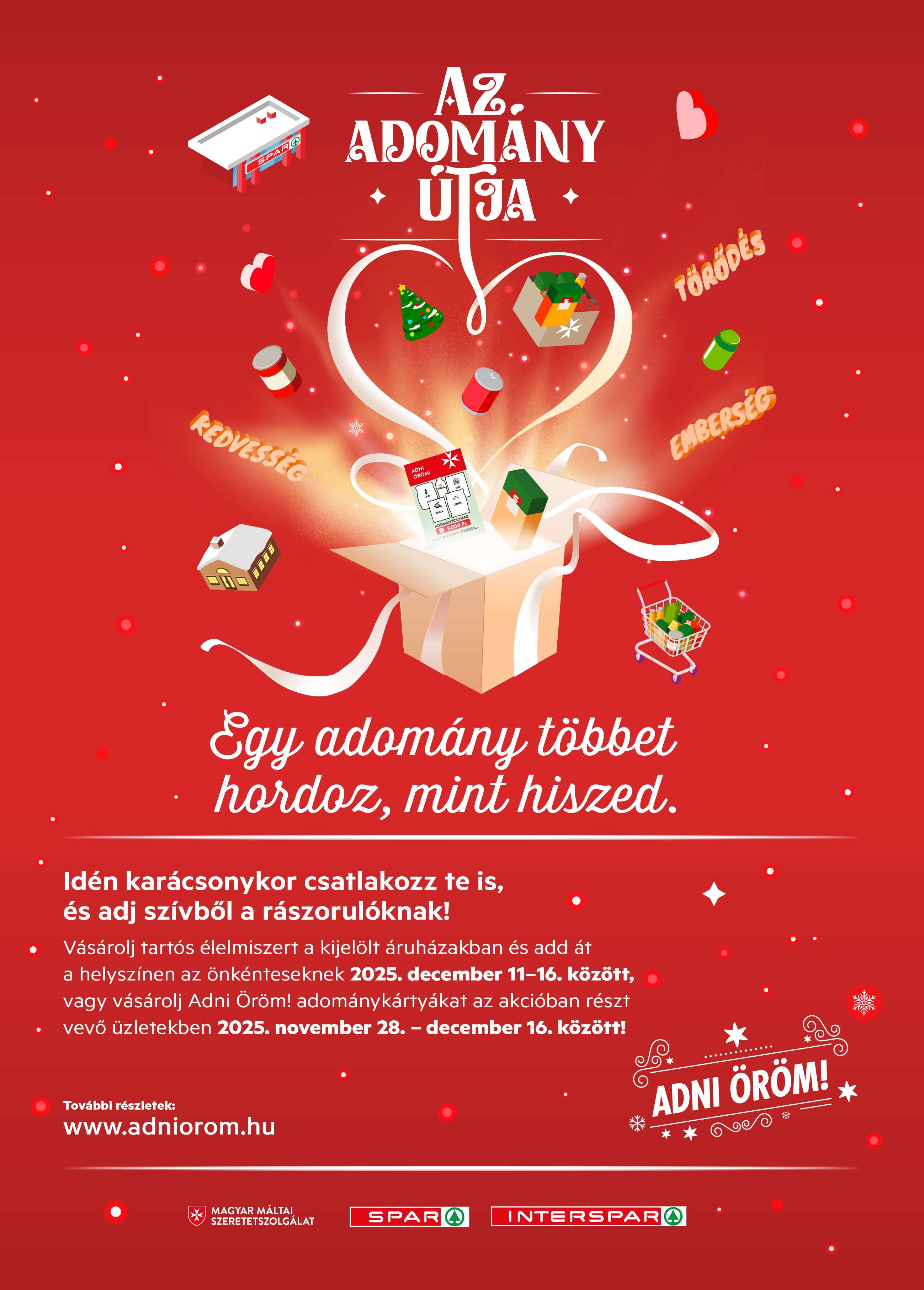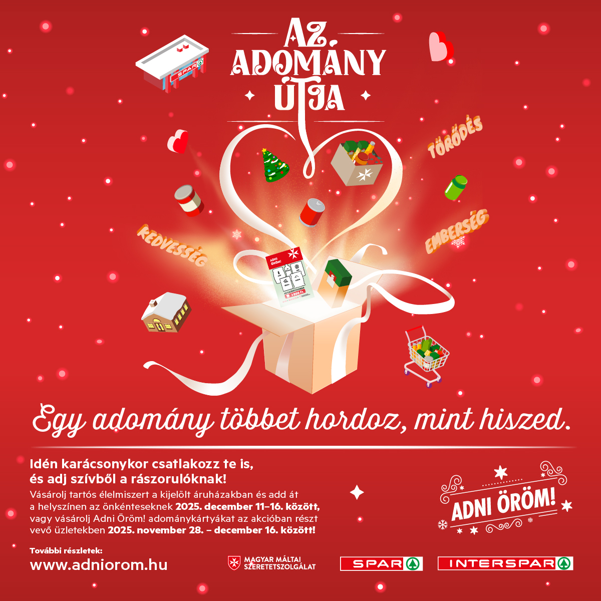 „Stratégiai partnerünkkel, a Magyar Máltai Szeretetszolgálattal 29. alkalommal indítottuk el az Adni Öröm! adománygyűjtő akciót. A közösen végzett munka évről évre bizonyítja, hogy az apró figyelmességek ünnepet tudnak teremteni azoknak, akiknek a legnagyobb szükségük van rá. Arra biztatjuk vásárlóinkat, hogy ha lehetőségük engedi, csatlakozzanak ehhez az összefogáshoz. Egy-egy darab tartósélelmiszer többet hordoz, mint hinnénk: a figyelem és az emberség erejét” - emelte ki Maczelka Márk, a SPAR Magyarország kommunikációs vezetője.